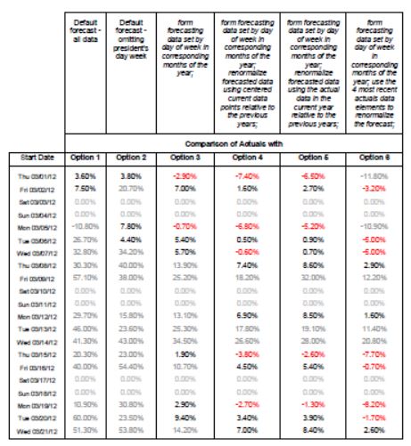 Using a database with data up to 29th February, forecasts were created for the first three weeks of March 2012 using different directives. It was then possible to compare the forecasts with the actual data to determine which were more accurate. The results for the main queue group are summarised below: